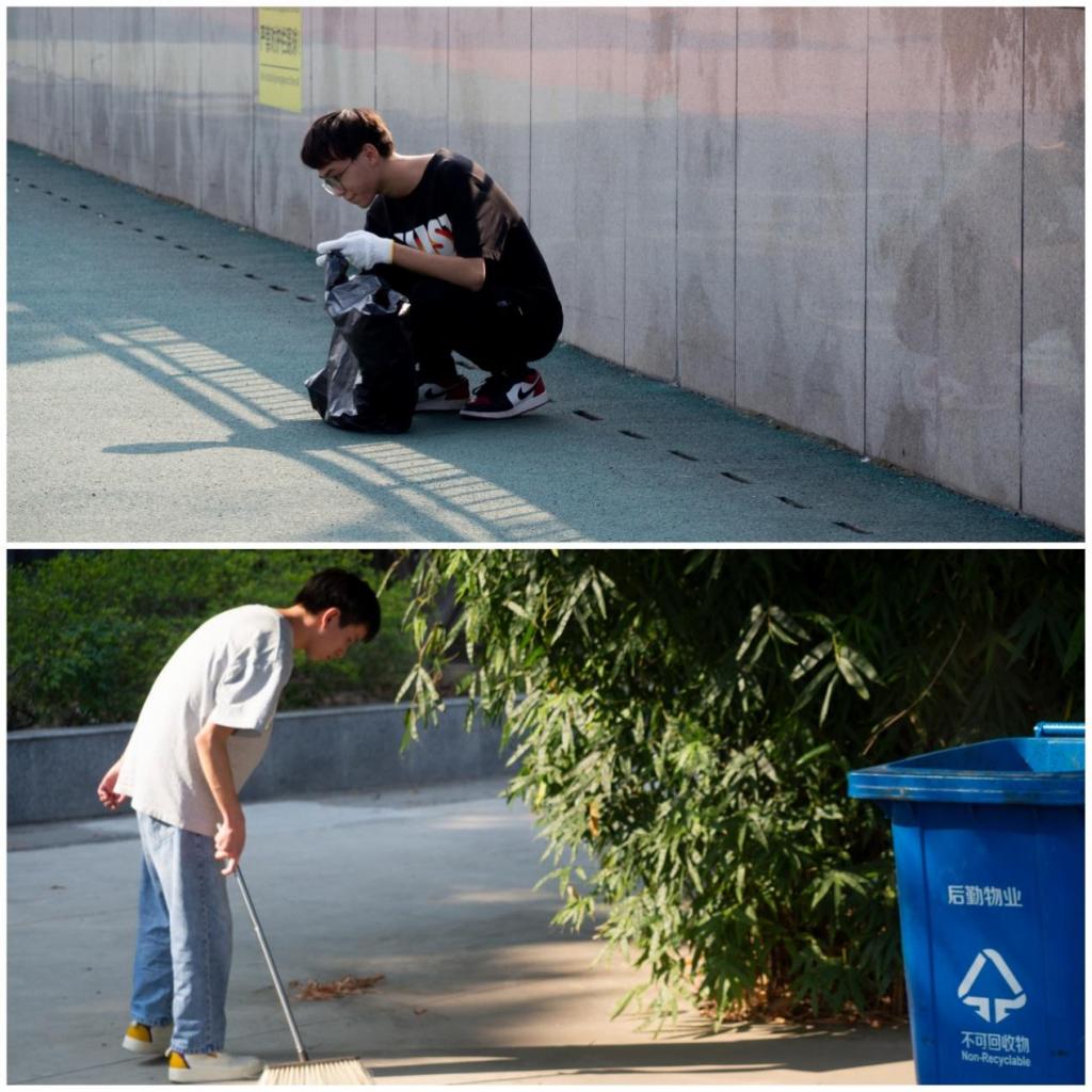 准备工作结束后,下午两点,活动正式开始,各班按规定区域分头开展行动。现场,同学们拿着铁锹、扫帚等工具清扫落叶和垃圾。过程中同学们发扬不怕苦、不怕脏的精神,全面认真清理,彼此分工协作,忙碌但有条不紊。