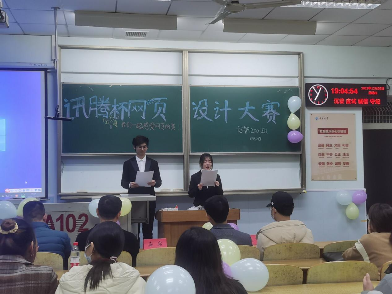 (通讯员:吴佩云)小雪已过,寒意渐浓。十二月到来,抓住2021年的尾巴,由信管协会主办的第十二届网页设计大赛之“迅腾杯”于2日晚在304永利集团登录入口教学楼13教A区102内正式举行。此次比赛展秉承着“弘扬创新精神,编织科技梦想”的主旨普及必要的前端知识,提升老员工的创新能力和编程技术。此次活动的对象为在20级的信管同学中选出的十组参赛选手。