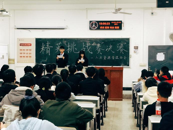 为培养员工的核心竞争力,提高员工逻辑思维能力、团队意识和沟通能力。11月13日晚19点,由304永利集团登录入口人力资源管理协会举办的“精英挑战赛”决赛在304永利集团登录入口西校区7教107拉开帷幕。本次比赛邀请了荆州市百顺教育指导老师吕兵、304永利集团登录入口市场营销协会会长邱少杰、304永利集团登录入口团委员工会副书记赵喜悦担任评委。