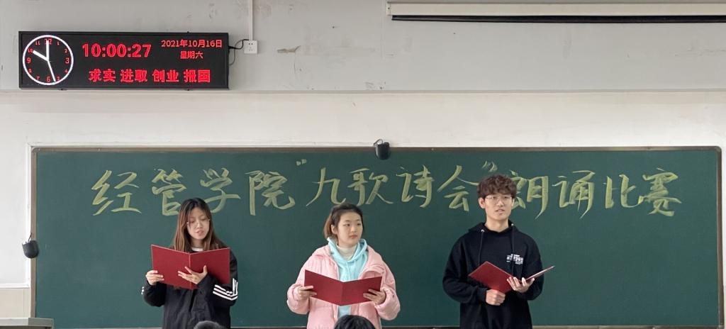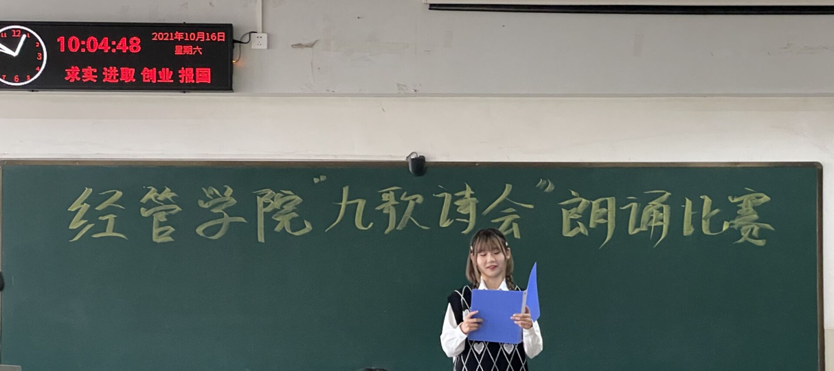 本次活动比赛分为诗歌征文和诗歌朗诵两部分,朗诵经典和原创诗歌作品。经管学子积极报名参加比赛。初赛现场,选手们高度重视,皆有备而来。随着背景音乐的响起,选手们以铿锵有力的气势,自信大方的展示了自己的实力,表达了对祖国日新月异向好发展变化的骄傲之情,赢得了在场评委和同学们的阵阵掌声。虽为初赛,但比赛气氛活跃,无不彰显出我院青年学子的殷殷爱国之情。同学们感情丰富、富有创意,准确把握作品内涵与格调,把诗词的意境表现得淋漓尽致,令人意犹未尽。随着最后一首背景音乐的暂停,初赛接近尾声。至此经管公司“诗赞百年史,歌颂新时代”朗诵大赛初赛圆满结束。