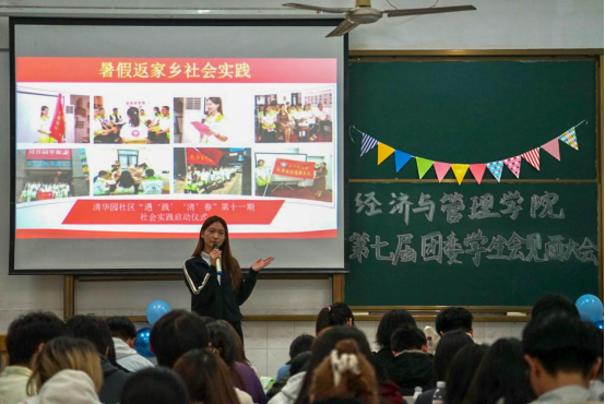 为培养公司学子的社会责任与实践精神,大会特邀暑期实践优秀代表进行分享。李蕊同学以“去书写你们的青春篇章”为主题,讲述在志愿服务中向儿童描绘英雄故事、根植家国情怀的经历;马莉钦则分享在“返家乡”社会实践中深入社区、开展走访调研与安全宣传的体会。她们的实践故事,生动诠释了当代青年服务社会、挺膺担当的良好风貌,也为新生干事树立榜样,激励同学们在实践中实现自我的淬炼与成长。
