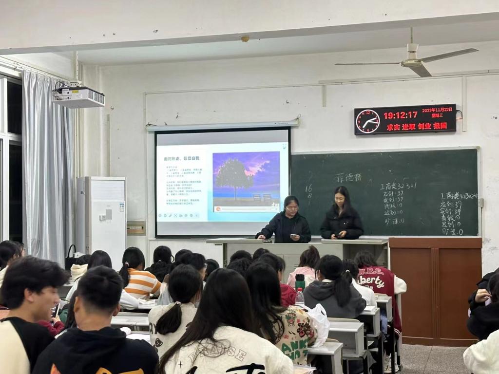 首先,心委和同学们一起学习了解心理健康的意义,认识心理健康的重要性。接着,她们向同学们介绍阅读的意义,通过观看相关心理健康教育短视频,探讨交流目前互联网上较热的“精神内耗”话题,告诉同学们:也许我们并不完美,但我们都在努力向前。呼吁同学们在最好的年华要多读书,因为读书可以让我们获取知识与技能、拓宽视野、充实头脑、治愈心灵,懂得悦纳自己,学会帮助他人。班会最后,为检验学习效果,心委组织同学们进行心理健康知识竞答,同学们踊跃发言,现场气氛热烈。