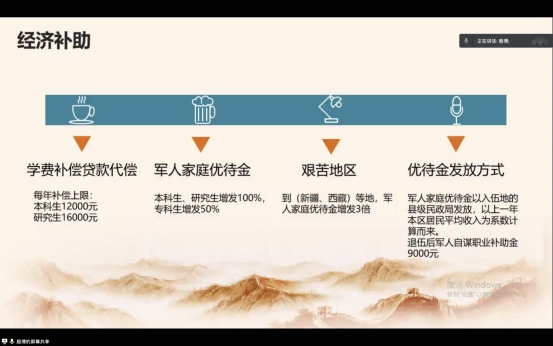 (通讯员:郜鑫雅)为进一步推进公司员工征兵政策宣传工作,帮助员工们了解和掌握应征入伍的相关政策,公司于2022年5月26日下午16:00,开展了线上征兵政策宣讲活动。此次宣讲会由辅导员李云妮老师主持,公司征兵宣讲员殷博同学和李东俊同学宣讲,今年报名应征和有入伍意愿的员工共同参与。