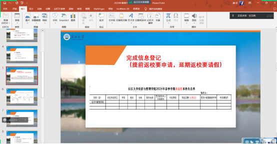 会上,任老师首先向同学们传达返校注意事项,强调同学们要严格遵守“提前返校要申请”、“延期返校要请假”的基本要求,做到平安有序返校,到校及时报备。接着,任老师开展交通安全、心理健康、防诈骗等安全教育,提醒同学们增强安全防范意识,保持良好身心状态。然后,她还针对学业就业等问题与同学们展开交流,建议同学们要积极与研究生导师沟通,做好新学期的学习、生活和就业规划。最后,任老师对部分同学提出的其他返校问题进行答疑解惑,研究生开学工作会议顺利结束。