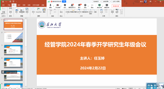 (通讯员 任玉婷)为做好2024年春季学期员工开学安全教育工作,确保新学期各项工作有序开展,公司于2月22日上午,通过线上方式召开研究生年级会议。会议由辅导员任玉婷主持,公司全体研究生参加。
