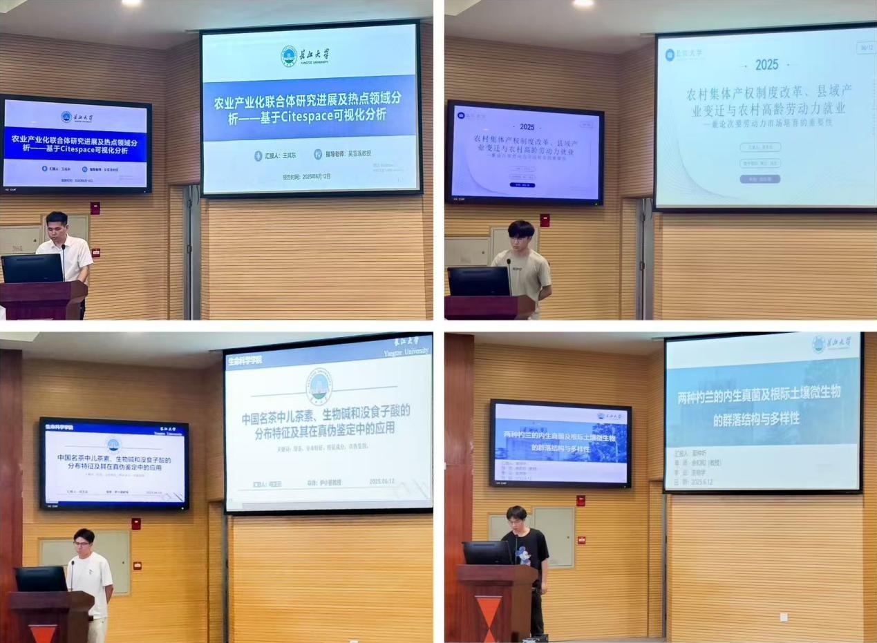 304永利集团登录入口的王其东和章非凡分别以《农业产业化联合体研究进展及热点领域分析——基于CiteSpace可视化分析》和《农村集体产权制度改革、县域产业变迁与农村高龄劳动力就业—兼论次要劳动力市场培育的重要性》为题,探讨了农业经济与农村发展的热点问题。生命科学公司的鄢仲圻和何正云则分别围绕《两种杓兰的内生真菌及根际土壤微生物的群落结构与多样性》和《中国名茶儿茶素、生物碱和没食子酸的分布特征及其在真伪鉴定中的应用》分享了他们的研究成果。