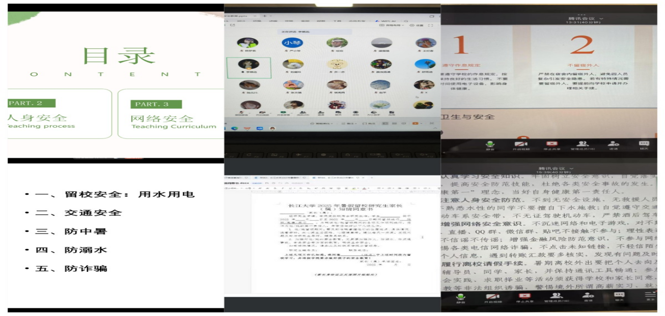 各班班会围绕“人身安全、网络安全、出行安全、宿舍安全和离校管理”等重点方面进行深入宣讲。各班班长,暑期是各类安全隐患高发期,大家要警惕溺水、交通事故、网络诈骗、非法借贷等风险行为。不得前往无安全保障的水域游泳,不得酒驾、无证驾驶,保持良好的网络行为习惯,不接触不良网络内容,不参与任何形式的网络借贷行为。