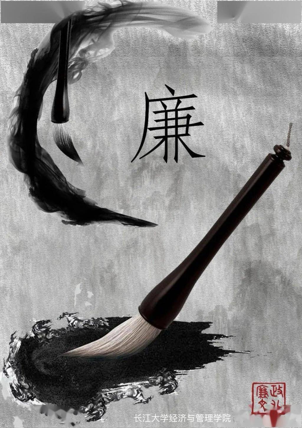 提笔书写清廉,融入中国水墨艺术,寓意以文人名士的精神,用笔触揭示社会腐败现象,彰显清廉文化,推动清廉思想的广泛传播。