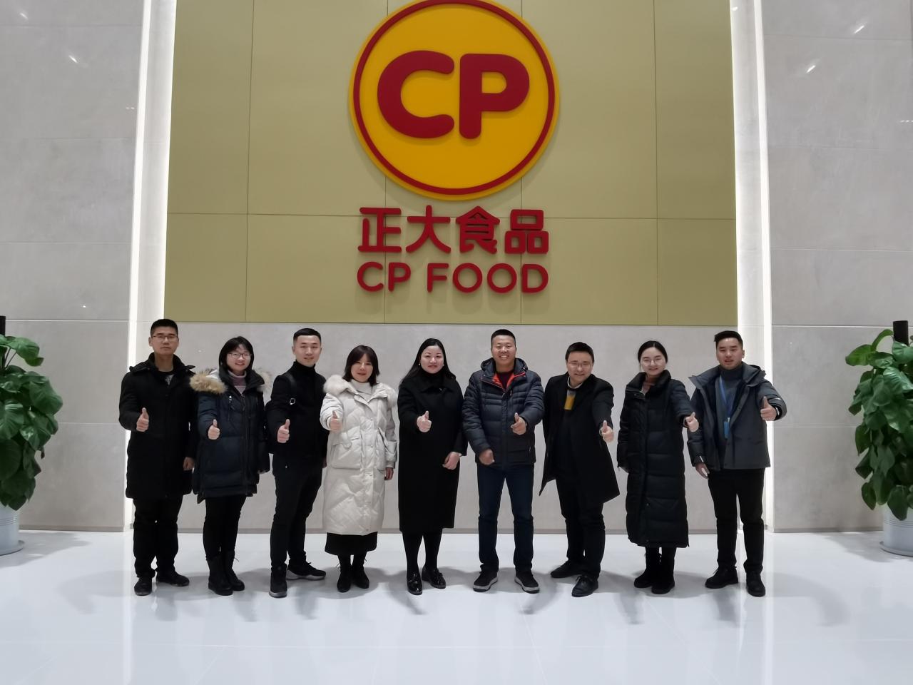 在参观襄阳正大食品有限公司时,公司一行人参观了整个食品生产链,在讲解员的引导下,对食品整个生产、包装到出厂过程进行了解。参观结束,考察团在会议室与襄阳正大人事部进行会谈,人事总监杨玲详细介绍了企业的发展及近况,物流总监张爱民就企业的运营进行了介绍,双方也就未来的合作进行深入交流。