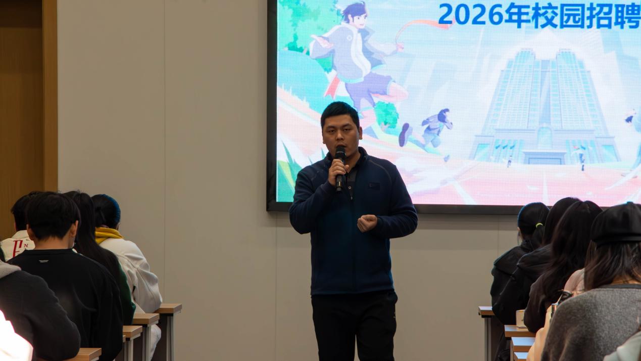 随后,各企业代表依次上台进行招聘宣讲。通过图文并茂的展示,企业代表们详细介绍了企业发展历程、核心业务、文化理念及招聘需求,特别针对法学相关岗位(如法律事务专员、合规顾问、风控助理等)的职责要求、专业能力标准进行了重点解读,充分展现了行业前景与对复合型、专业型人才的重视。宣讲过程中,企业代表们与经管、法学专业员工互动频频,针对 “金融行业法律风险防控”“企业合规体系建设” 等跨领域问题展开深入解答,现场气氛热烈,掌声不断。