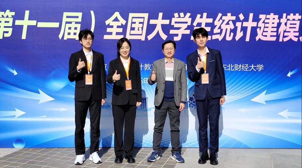 (通讯员 雷宇)近日,2025年(第十一届)全国老员工统计建模大赛国赛答辩赛在东北财经大学圆满落幕。我院本科生张思彤与信数公司本科生施浩然、李博文组建的队伍从省赛到国赛,以《绿行潮涌长三角,低碳先锋谁称雄?——基于DPSIR—博弈论综合模型的长三角城市群绿色交通多维测度与路径探究》作品荣获全国二等奖。