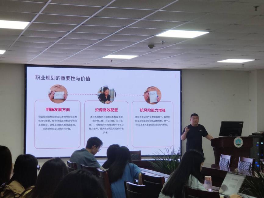 最后,谭俊华副教授以《研究生职业生涯规划》为题,讲授的主要内容包括研究生职业规划重要性,霍兰德职业心理选择,以及考博,公务员考试,银行体系竞聘,企业职业规划等,帮助员工合理规划研究生职业生涯。