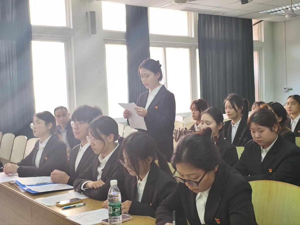思想汇报环节,张慧巧同志结合学习党的二十届四中全会精神,分享了思想成长历程。她表示通过在专业学习、团支部工作及各类实践中的锻炼,增强了综合素质,同时也认识到理论学习深度不够、工作细节把握不足等问题,将通过制定学习计划、加强复盘总结等方式持续改进,以党员标准严格要求自己。